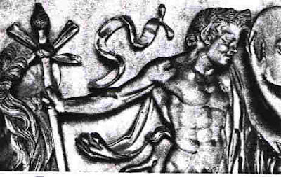 A mão mágica de bronze, data do período final do Império Romano, quando as ciências ocultas se proliferaram grandemente, esta mão trás os principais símbolos desta época uma cabeça de enguia e uma pinha. "Os adoradores de Dionísio procuravam entrar em um estado de frenesi, durante o qual tinham visões sobre o futuro" [Mind and Magic, Francis X. King, Crescent, Grã-Bretanha, 1991, pg 150.] Este culto pagão praticava muitos outros tipos de cerimônias dentre elas orgias sexuais e manifestações espirituais.